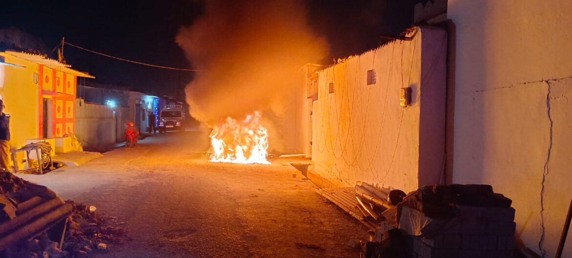 कोरबा। दर्री थाना अंतर्गत अयोध्यापुरी जैलगांव चौक बस्ती में घर के बाहर खड़ी एक स्विफ्ट डिजायर कार को अज्ञात लोगों ने आग के हवाले कर दिया। इस घटना के बाद बस्ती में हड़कंप मच गया और देखते ही देखते बस्ती वासियों की भीड़ एकत्रित हो गई किसी तरह आग पर काबू पाने का प्रयास बस्ती वासियों के द्वारा किया गया लेकिन आग की लपटे इतनी ज्यादा थी कि वाहन धू धू कर जलने लगा लोगों ने इसकी सूचना तत्काल दमकल वाहन और 112 की टीम को 112 की टीम मौके पर पहुंचे घटनाक्रम की जानकारी ली वही काफी समय बीत जाने के बाद दमकल वाहन मौके पर पहुंचे लेकिन वहां तब तक चल कर खाक हो चुका था।