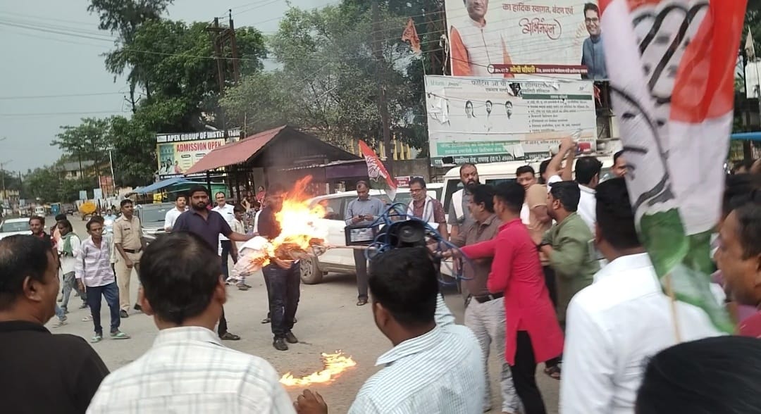 आज हमें ईडी के खिलाफ प्रदर्शन किया है। अगर सरकार अपने हथकंडों से बाज नहीं आती है तो आगे आंदोलन और उग्र होगा।ग्रामीण अध्यक्ष नगेन्द्र नेगी ने कहा कि विधानसभा सत्र का अंतिम दिन अडानी के लिए तमनार में काटे जा रहे पेड़ों का मुद्दा आज उठाया जाना था। जिससे ध्यान भटकाने के लिए भूपेश बघेल के घर पर ईडी की रेड करवा दी। उन्होंने आरोप लगाते हुए कहा की भाजपा ईडी, सी बी आई जैसी एजेंसियों को विपक्ष के नेताओं को डराने और दबाने के लिए इस्तेमाल कर रही है। और कांग्रेस के नेताओं को जानबूझकर परेशान किया जा रहा है। इस से कांग्रेस और कांग्रेस के कार्यकर्ता डरने वाले नहीं है। इस सन्दर्भ ने कांग्रेस प्रवक्ता दीपक मंडल ने बताया कि 22 जुलाई को प्रदेश कांग्रेस के निर्देशानुसार रायगढ़ के कोतरा रोड में आर्थिक नाकेबंदी किया जाएगा। पुतला दहन के दौरान जिला कांग्रेस ग्रामीण व शहर अध्यक्ष द्वय नगेन्द्र नेगी व अनिल शुक्ला, वरिष्ठ नेता दीपक पाण्डेय, जयंत ठेठवार, महामंत्री शाखा यादव, विकास शर्मा, आशीष शर्मा,अनिल अग्रवाल चीकू, राकेश पांडेय, सत्यप्रकाश शर्मा,आशीष जयसवाल,आरिफ हुसैन , महिला कांग्रेस अध्यक्ष रानी चौहान, मदन महन्त, रामलाल पटेल, यतीश गांधी, नारायण घोरे, दीपक मंडल, पार्षद अक्षय कुलदीप, प्रदीप राजु टोप्पो, राजेश कुछवाह, नरेश जयसवाल, अभिषेक शर्मा, रवि पांडेय,,अमृत काट्जू , आशीष यादव सुनील आनंद, राजेंद्र यादव, कौशिक भौमिक अज्ञात खुशीराम मल्होत्रा , गुलशन साहू, गौरव साहू, विकास महापात्रे , भोजराम भट,सहित बड़ी संख्या में कांग्रेसजन उपस्थित थे।
