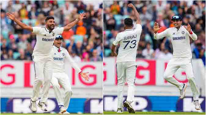 भारत ने ओवल में खेले गए पांचवें और आखिरी टेस्ट में छह रन से जीत हासिल की है। भारत ने 374 रन का लक्ष्य रखा था। जवाब में इंग्लिश टीम 367 रन पर सिमट गई। इंग्लैंड को पांचवें दिन जीत के लिए 35 रन की जरूरत थी और भारत को चार विकेट चाहिए थे। सिराज ने आज तीन विकेट लिए, जबकि प्रसिद्ध कृष्णा ने एक विकेट लिया। सिराज ने पारी में पांच विकेट लिए, जबकि प्रसिद्ध कृष्णा को चार विकेट मिले। आकाश दीप ने एक विकेट लिया। इसी के साथ पांच मैचों की टेस्ट सीरीज 2-2 की बराबरी पर समाप्त हुई। शुभमन गिल की अगुआई में एक युवा टीम का ऐतिहासिक प्रदर्शन है। किसी क्रिकेट पंडित ने भारत को इस दौरे से पहले पसंदीदा नहीं बताया था। हालांकि, गिल की युवा टीम ने सभी आलोचकों का मुंह बंद कर सीरीज को 2-2 से ड्रॉ कराया।