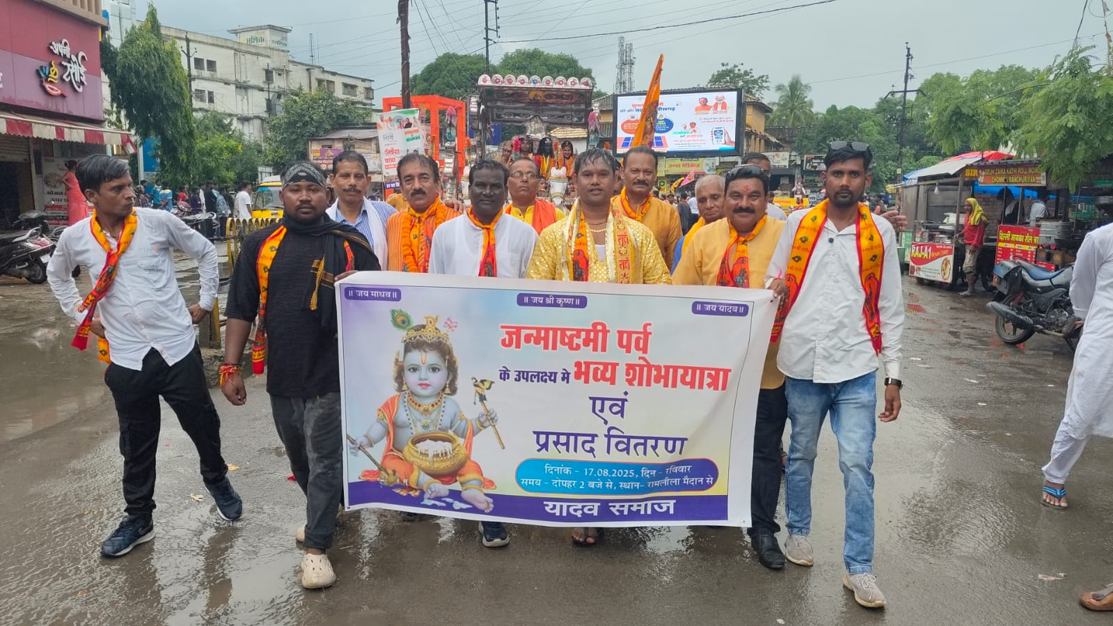 रायगढ़। श्रीकृष्ण जन्माष्टमी के पावन अवसर पर रविवार को यादव समाज द्वारा निकाली गई शोभायात्रा ने पूरे शहर को कृष्णमय बना दिया। रामलीला मैदान से प्रारंभ हुई इस यात्रा में भगवान श्रीकृष्ण की मनमोहक झांकियों और भक्ति गीतों ने श्रद्धालुओं का मन मोह लिया।