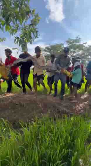 ग्रामीणों से मिली जानकारी के अनुसार करीबन आधे घंटे की मशक्कत बाद अजगर को अपने कब्जे में करने के बाद वन विभाग की टीम को इसकी सूचना दी गई। वन विभाग की टीम ने अजगर को सुरक्षित एक जंगल में छोड़ दिया है। लालबाग थाना के तुमड़ीबोड़ चौकी अंतर्गत आने वाले ग्राम पेंडरवानी के ग्रामीणों से मिली जानकारी के अनुसार किसान माखनलाल साहू अपने खेत में ही कार्य कर रहा था। दोपहर करीबन डेढ़ बजे के दौरान काम करते हुए उसे पैर में कुछ हलचल महसूस हुई। उसने देखा तो अजगर उसके पैर को जकड़ रहा था इससे पहले वह अपने आपको छुड़वा पाता, अजगर ने उसे नीचे गिराकर लपेटना शुरू कर दिया था हालांकि इस दौरान किसान ने अपने बचाव के लिए जोर से आवाज लगाना शुरू कर दिया था, जिसे सुनकर पास के खेत में काम कर रहे एक किसान मदद के लिए आया। उसने अन्य लोगों को भी बुलाया और फिर सभी ने मिलकर किसी तरह किसान माखन साहू को अजगर की चपेट से छुड़वाया।