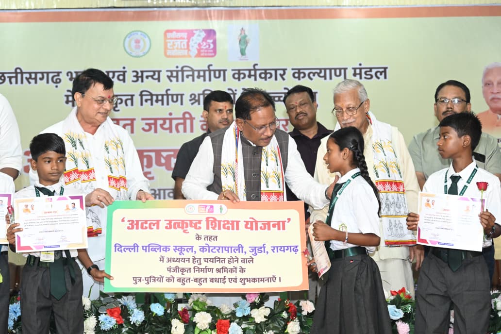 रायपुर। छत्तीसगढ़ शासन के भवन एवं अन्य सन्निर्माण कर्मकार कल्याण मण्डल द्वारा संचालित “अटल उत्कृष्ट योजना” का शुभारंभ आज प्रदेश के यशस्वी मुख्यमंत्री माननीय श्री विष्णु देव साय जी के कर-कमलों से किया गया। इस योजना के अंतर्गत प्रदेश के चुनिंदा आवासीय विद्यालयों का चयन किया गया है, जिनमें दिल्ली पब्लिक स्कूल रायगढ़ भी सम्मिलित है। इन विद्यालयों में कर्मकारों के बच्चों को निःशुल्क एवं गुणवत्तापूर्ण शिक्षा की सुविधा उपलब्ध कराई जाएगी।