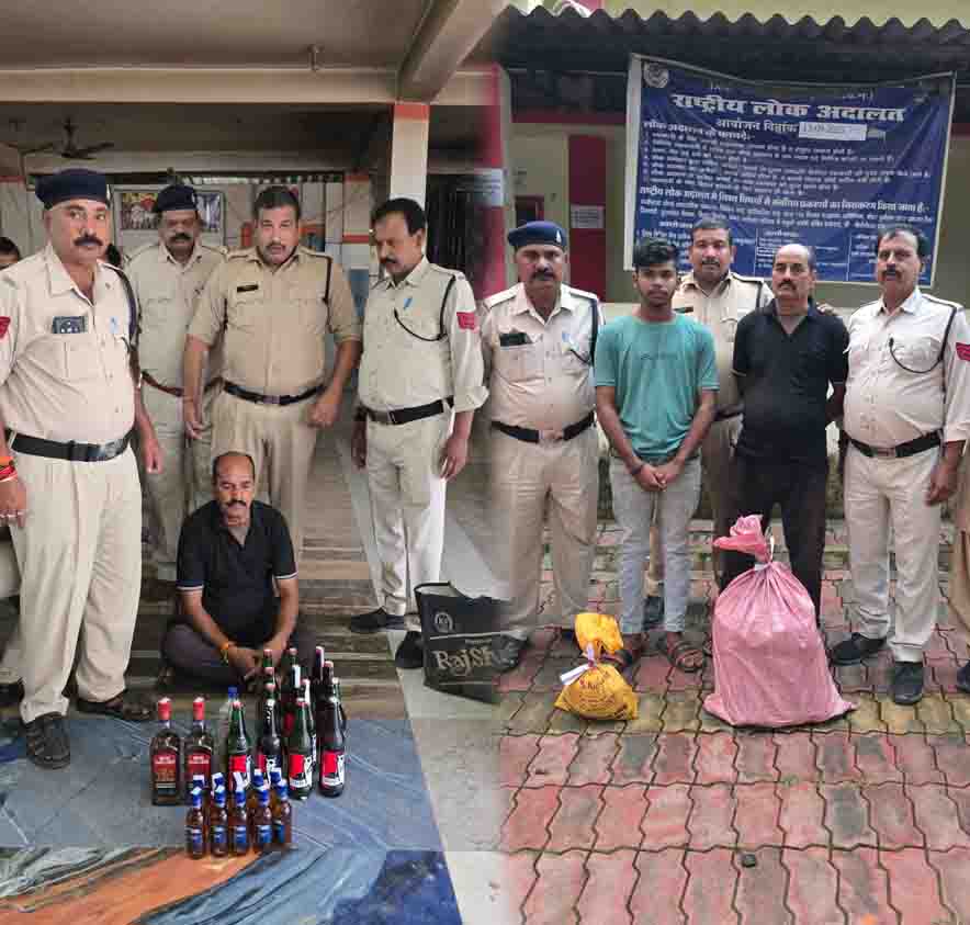 बलरामपुर । संभागीय आबकारी उड़नदस्ता संभाग सरगुजा की टीम द्वारा नशे के सौदागरों के खिलाफ ताबड़तोड़ कार्यवाही जारी है। आज गस्त के दौरान मुखबिर से सूचना मिली की बघिमा स्थित शर्मा ढाबा से अवैध विदेशी शराब की बिक्री की जा रही है ढाबा पहुंचने पर अरुण कुमार सिंह उपस्थित मिले, जो की ढाबा का संचालन मलिक की अनुपस्थिति में करते हैं। ढाबा का मालिक ढाबे में नहीं था। ढाबे की तलाशी लेने पर ढाबे एवं घर से तथा ढाबे में खड़ी इनोवा गाड़ी से कुल 13 नग सिंबा स्ट्रांग बियर, दो नग रॉयल चैलेंज व्हिस्की का बोतल तथा 10 पाव आफ्टर डार्क व्हिस्की बरामद कर आबकारी अधिनियम के तहत अरुण कुमार सिंह को गिरफ्तार किया गया।