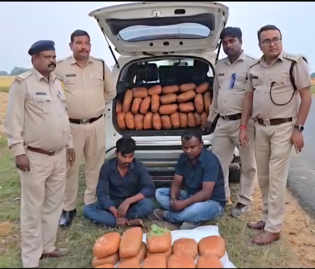 कार में बैठे दोनों व्यक्तियों ने अपना नाम जगत राम राजवाडे तथा अरविंद राजवाड़े बताया.. कार की तलाशी जब ली गई तो उड़नदस्ता की टीम हक्की-बक्की रह गई, पूरे कार में गांजा का पैकेट भरा हुआ था जब पैकेट को गिना गया तो कुल 54 पैकेट गांजा के थे..जिनका कुल वजन 56.559 किलोग्राम होना पाया गया.. मौके पर दोनों आरोपियों को एनडीपीएस एक्ट की धारा 20 सी के तहत गिरफ्तार कर आज विशेष न्यायाधीश नारकोटिक्स अंबिकापुर में पेश किया गया जहां से जेल दाखिल का आदेश प्राप्त हुआ। आरोपी जगत राम राजवाडे कोरजा नवापारा थाना लखनपुर जिला सरगुजा का रहने वाला है तथा दूसरा आरोपी अरविंद राजवाड़े भिट्ठी कला थाना मणिपुर जिला सरगुजा का रहने वाला है।। जप्त गांजे का कुल बाजार मूल्य 1200000 है।