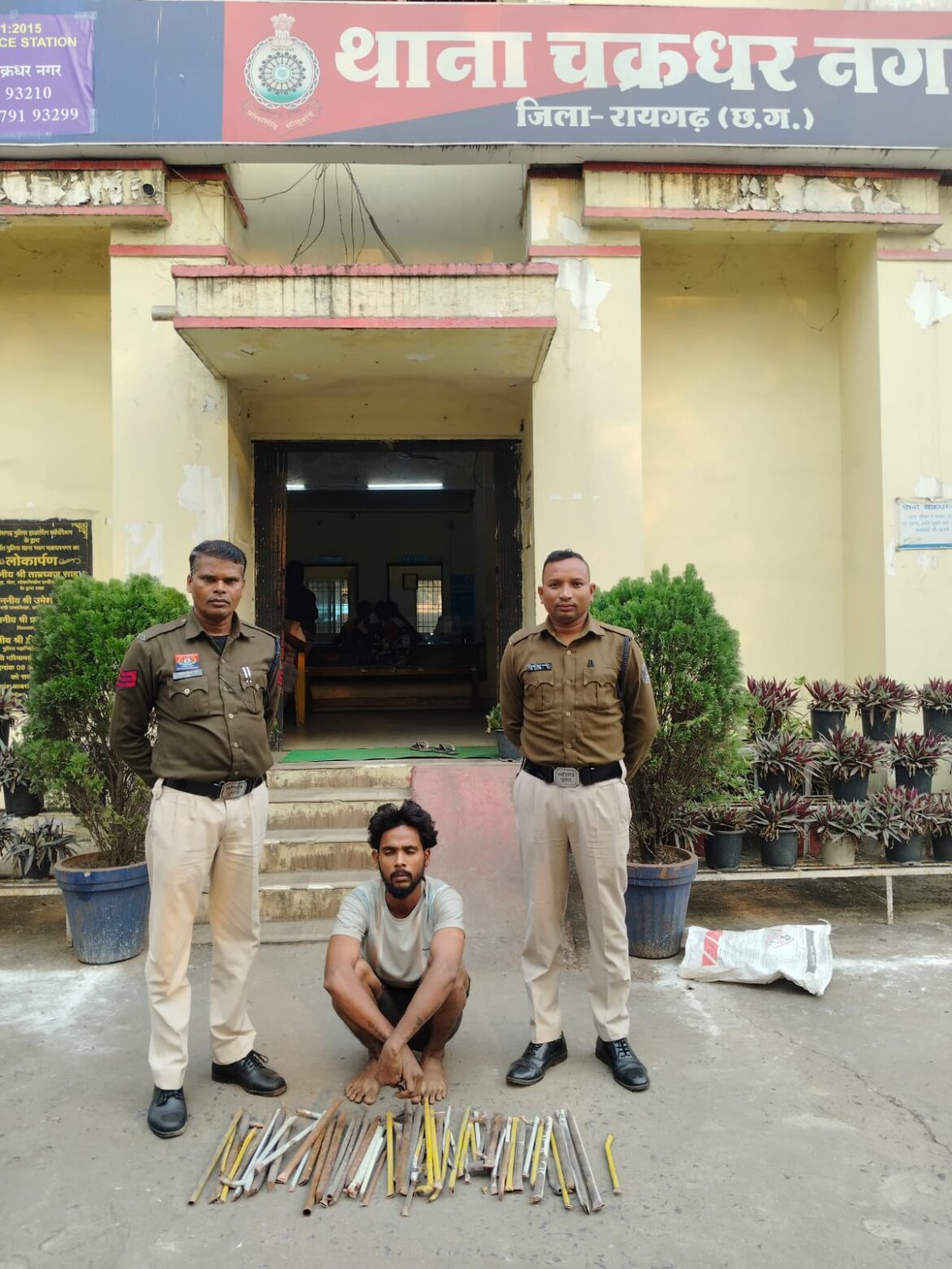 आज मुखबिर की सूचना पर पुलिस ने चौथे फरार आरोपी विशाल गुप्ता पिता स्व. रामदेव गुप्ता (उम्र 23 वर्ष), निवासी आईटीआई कॉलोनी, हाउसिंग बोर्ड गोवर्धनपुर शराब दुकान के पास को गिरफ्तार किया गया जिससे चोरी कॉपर पाईप के टुकडे बरामद कर रिमांड पर भेजा। पूरे प्रकरण के खुलासे में प्रभारी थाना चक्रधरनगर उपनिरीक्षक गेंदलाल साहू, प्रधान आरक्षक श्यामदेव साहू, आरक्षक संतोष कुर्रे तथा डायल 112 की टीम की महत्वपूर्ण भूमिका रही।