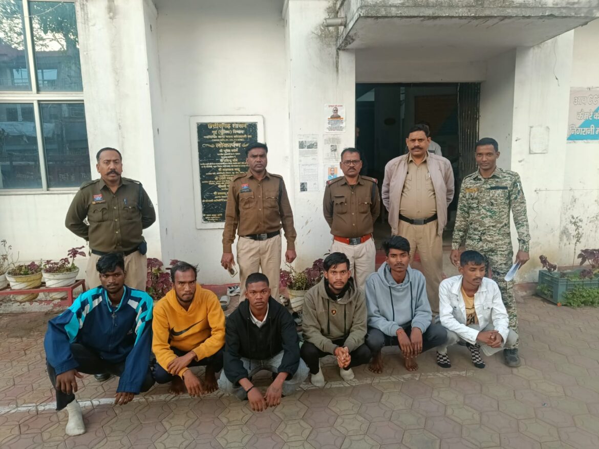 घटना की गंभीरता को देखते हुए थाना कोतवाली में अपराध क्रमांक 661/2025 धारा 333, 296, 351(2), 115(2), 191(2), 191(3), 324(4) बीएनएस के तहत मामला दर्ज किया गया। इसके बाद थाना प्रभारी कोतवाली निरीक्षक सुखनंदन पटेल के नेतृत्व में उप निरीक्षक ऐनु देवांगन एवं हमराह स्टाफ द्वारा त्वरित कार्रवाई करते हुए आरोपियों की पतासाजी कर उन्हें गिरफ्तार किया गया। पुलिस ने आरोपियों के कब्जे से लोहे का हथौड़ा, बेसबॉल बैट एवं बांस का डंडा बरामद किया है। गिरफ्तार आरोपियों में बादल उर्फ सानू सारथी, आकाश सारथी, सोनी उर्फ दुर्गा सारथी, ओम सारथी, यश महानंद, अंकित सारथी एवं अनिकेत सारथी सभी निवासी जवाहर नगर रामभांठा रायगढ़ शामिल हैं, जिन्हें आज न्यायिक रिमांड पर न्यायालय में भेज दिया गया है।